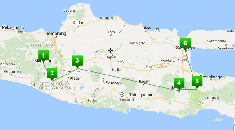 The tour commences in the center of Java Island, Yogyakarta which is known for its arts and cultural heritage. The first site to visit is Borobudur temple, the world’s biggest Buddhist monument which was built in 9th century. The sultan palace and water castle is a must visit places in the heart of the town. You will also experience the way the locals spend the evening in the city’s square. As you’re driving to the east, you will make a stop at other temple to explore is Prambanan Temple, a Hindu temple complex which was built in the same century as Borobudur was. The tour concludes with a chance of witnessing one of the spectacular sunrise views at Bromo Volcano.