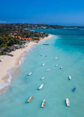 Nusa Dua is an exclusive resort enclave with manicured gardens and white-sand beaches. Ideal for luxury stays, golf, and relaxing seaside holidays.