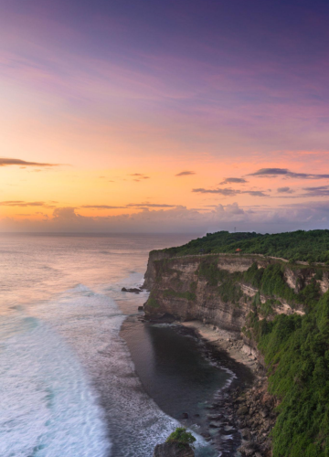 Uluwatu is famous for its towering cliffs and panoramic ocean views. It offers world-class surf breaks and iconic sunset scenery.